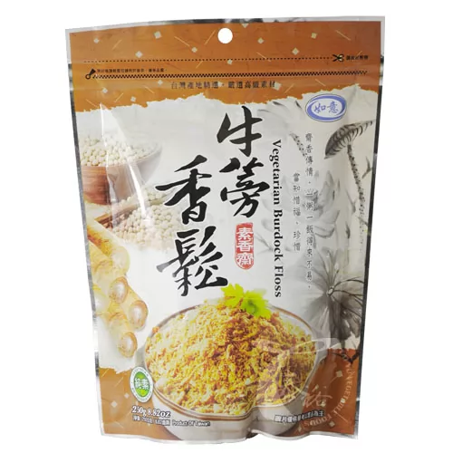 商品成份:植物性大豆蛋白纖維[大豆蛋白(非基因改造)、小麥澱粉、小麥蛋白、碳磷鈣、硫酸鈣]、砂糖、調和油(棕櫚油、大豆油、芥花油)、碗豆粉、低筋麵粉、玉米澱粉、麵包粉(麵粉、水、棕櫚油、酵母、焦糖色素、食用黃色四號、食用黃色五號)、新鮮牛蒡、鹽、調味劑(L-麩酸鈉、琥珀酸二鈉、食鹽、 5'-鳥嘌核苷磷酸二鈉、5'-次黃嘌核苷磷酸二鈉、胺基乙酸、DL-胺基丙酸)、枸杞香料粉